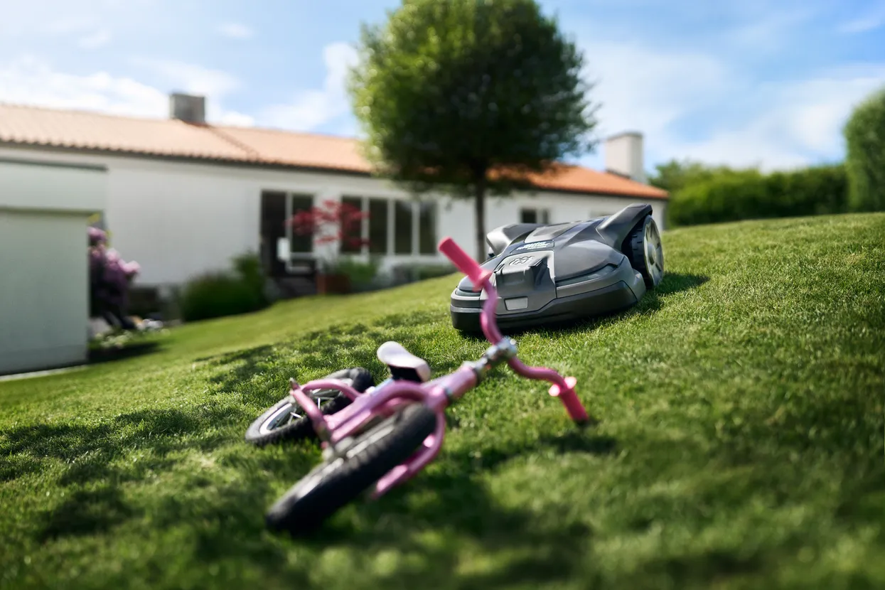 Præcis klipning opnås med reduceret risiko for påkørsel og uplanlagte stop takket være plæneklipperens sensorer, som registrerer og undgår forhindringer.